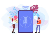Zdjęcie "Nagranie mikrofonu. Potwierdź głosem. Odbieraj telefon, odtwarzaj głos, wysyłaj dźwięk. Stabilny i niezmienny hałas. Transmitowany kontakt. Ilustracja pojedynczej koncepcji wektora." może być wykorzystywane do celów osobistych i komercyjnych zgodnie z warunkami zakupionej licencji Royalty-free. Obraz jest dostępny do pobrania w jakości wysokiej rozdzielczości do 5760x3840.