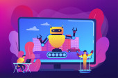 Wirtualny influencer abstrakcyjna koncepcja wektor ilustracji. Influencer marketing, digital agency service, wirtualny charakter, osoba generowana komputerowo, social media, marka avatar abstrakcyjna metafora.