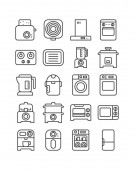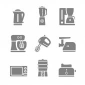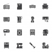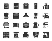 Zestaw ikon wektorowych urządzeń kuchennych, nowoczesna kolekcja symboli stałych, zestaw piktogramów wypełnionych sprzętem gospodarstwa domowego. Znaki, ilustracja logo. Zestaw zawiera ikony jak kuchenka elektryczna, lodówka, mikrofalówka