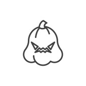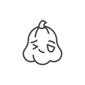 Cute Halloween dynia twarz linii ikona. liniowy znak stylu dla mobilnej koncepcji i projektowania stron internetowych. Pumpkin smiley emoji zarys ikony wektora. Symbol, ilustracja logo. Grafika wektorowa