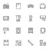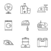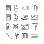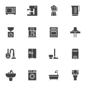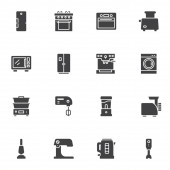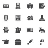 Zestaw ikon wektorowych urządzeń kuchennych, nowoczesna kolekcja symboli stałych, zestaw piktogramów wypełnionych sprzętem gospodarstwa domowego. Znaki, ilustracja logo. Zestaw zawiera ikony jak kuchenka elektryczna, lodówka, mikrofalówka