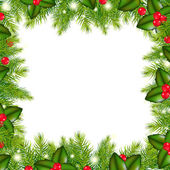 Niebieska ramka na kartkę świąteczną z liśćmi Holly z miejsca na tekst.