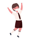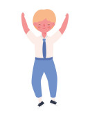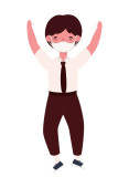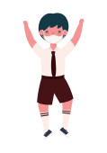 Chłopiec dziecko kreskówka z mundurem i ramiona w górę skoki wektor projekt