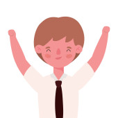 Chłopiec dziecko kreskówka z mundurem i ramiona w górę wektor projekt