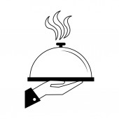 Ręka kelnera trzymająca ikonę talerza w stylu linii