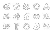 Zdjęcie "Zestaw ikon przyrodniczych, takich jak Bio shopping, Leaf. Dyplom, pomysły, uratować planetę. Deszczowa pogoda, energia wiatru, fale. Jabłko, Woda, Pogoda na świecie. Liście, orzechy pistacjowe, ekologiczne ikony linii. Wektor" może być wykorzystywane do celów osobistych i komercyjnych zgodnie z warunkami zakupionej licencji Royalty-free. Obraz jest dostępny do pobrania w jakości wysokiej rozdzielczości do 5760x3840.