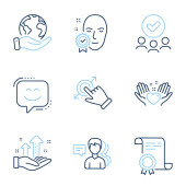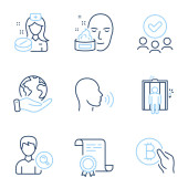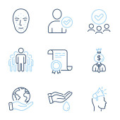 Zdjęcie "Twarz przyjęta, oddawanie krwi i ikony linii ochrony Uv ustawione. Dyplom, zapisać planetę, grupę ludzi. Brak słońca, Tablica Vision i znaki ochronne Uv. Wektor" może być wykorzystywane do celów osobistych i komercyjnych zgodnie z warunkami zakupionej licencji Royalty-free. Obraz jest dostępny do pobrania w jakości wysokiej rozdzielczości do 5760x3840.