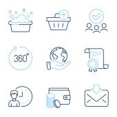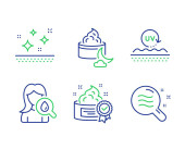 Zdjęcie "Kropla wody, ochrona Uv i myć ręce zestaw ikon linii. Dyplom, zapisać planetę, grupę ludzi. Pielęgnacja skóry, 24 godziny i znaki ochronne. Olej z surowicy, krem do skóry, krem do twarzy. Wektor" może być wykorzystywane do celów osobistych i komercyjnych zgodnie z warunkami zakupionej licencji Royalty-free. Obraz jest dostępny do pobrania w jakości wysokiej rozdzielczości do 5760x3840.