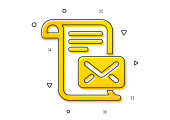 Przeczytaj znak wiadomości. Ikona korespondencji. Symbol e-mail. Żółte kółka. Klasyczna ikona korespondencji. Elementy geometryczne. Wektor