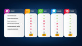 Notebook service, 360 stopni i ikony urządzeń mobilnych prosty zestaw. Cennik, tabela cen. Znak czasomierza. Naprawa komputera, wirtualna rzeczywistość, smartfon z tabletem. Stójcie. Wektor