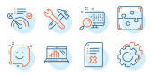 Zdjęcie "Naprawa smartfonów, Ścieżka docelowa i znaki programu lojalnościowego. Kucharz gotowania, Komunikacja i złamane ikony linii serca zestaw. Górne strzałki, symbole analizy wyszukiwania. Zastępca szefa kuchni, wiadomości ze smartfonu. Wektor" może być wykorzystywane do celów osobistych i komercyjnych zgodnie z warunkami zakupionej licencji Royalty-free. Obraz jest dostępny do pobrania w jakości wysokiej rozdzielczości do 5760x3840.