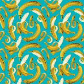 Zdjęcie "Ilustracje wektora bananów. Płynne tło wzoru. ręcznie rysować kreskówki skandynawski nordycki styl projektowania mody lub wnętrza lub pokrycie lub tekstylia." może być wykorzystywane do celów osobistych i komercyjnych zgodnie z warunkami zakupionej licencji Royalty-free. Obraz jest dostępny do pobrania w jakości wysokiej rozdzielczości do 5760x3840.