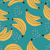 Ilustracje wektora bananów. Płynne tło wzoru. ręcznie rysować kreskówki skandynawski nordycki styl projektowania mody lub wnętrza lub pokrycie lub tekstylia.