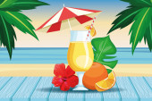witaj letnia scena sezonowa z parasolem i koktajlami