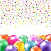 Zadowolona kartka urodzinowa z balonami Przejrzyste tło z gradientową siatką, Ilustracja wektora