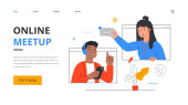 Spotkanie biznesowe z kolegami, strona internetowa firmy. Spotkanie online, dołącz do grupy meetup, serwis internetowy meetup, najlepsza komunikacja tutaj koncepcja. Strona główna lądowanie strony internetowej szablon strony.