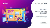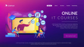 Pracownik hostelu, kucharz, pokojówka i dzwonek edukacji. Kursy hotelarskie, szkolenia personelu hotelarskiego, koncepcja programów szkoleniowych branży hotelarskiej. Strona główna lądowanie strony internetowej szablon strony.