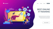 Zdjęcie "Pracownik hostelu, kucharz, pokojówka i dzwonek edukacji. Kursy hotelarskie, szkolenia personelu hotelarskiego, koncepcja programów szkoleniowych branży hotelarskiej. Strona główna lądowanie strony internetowej szablon strony." może być wykorzystywane do celów osobistych i komercyjnych zgodnie z warunkami zakupionej licencji Royalty-free. Obraz jest dostępny do pobrania w jakości wysokiej rozdzielczości do 5760x3840.
