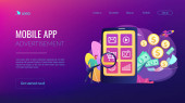 Ecommerce, kampania promująca zakupy internetowe. Optymalizacja mediów mobilnych, mobilna strategia SEO, ukierunkowana koncepcja kanału komunikacji. Strona główna lądowanie strony internetowej szablon strony.