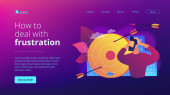 Zestresowany człowiek cierpiący na migrenę. Jak radzić sobie z frustracją, frustracją i kontrolą gniewu, koncepcją emocjonalnie inteligentnych nawyków. Strona główna lądowanie strony internetowej szablon strony.
