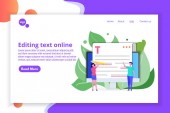 Business team editing udostępniony dokument na laptopie online. Dokument udostępniony, dostęp do folderów udostępnionych, koncepcja edycji dokumentów opartych na współpracy. Strona internetowa żywe fioletowe lądowania szablon strony internetowej.