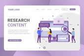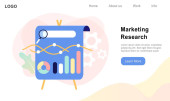 Marketingowcy z wykresem możliwości marketingowych badań powiększających. Badania marketingowe, analiza marketingowa, koncepcja możliwości rynkowych i problemów. Strona internetowa żywe fioletowe lądowania szablon strony internetowej.
