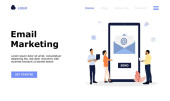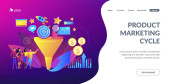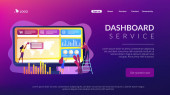 Zdjęcie "Cusromer odbiera zautomatyzowane wiadomości marketingowe, malutcy ludzie. System automatyki marketingowej, zautomatyzowany komunikat reklamowy, koncepcja deski rozdzielczej marketingowej. Strona internetowa żywe fioletowe lądowania szablon strony internetowej." może być wykorzystywane do celów osobistych i komercyjnych zgodnie z warunkami zakupionej licencji Royalty-free. Obraz jest dostępny do pobrania w jakości wysokiej rozdzielczości do 5760x3840.