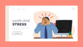 Wyczerpany, sfrustrowany pracownik, wypalony. Szef krzyczy na pracownika, ostateczny termin. Jak rozładować stres, ostre zaburzenia stresu, koncepcja stresu związanego z pracą. Strona główna lądowanie strony internetowej szablon strony.