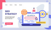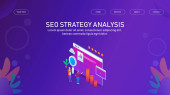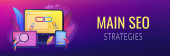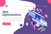 Technologia komunikacji online, biznes internetowy, badania marketingowe. Link budynku, główne strategie SEO, koncepcja optymalizacji wyszukiwarki. Strona główna lądowanie strony internetowej szablon strony.