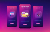 Zdjęcie "Specjaliści od mediów społecznościowych zarządzają wieloma kontami na ogromnym laptopie. Deska rozdzielcza mediów społecznościowych, internetowy interfejs marketingowy, koncepcja metryki mediów społecznościowych. Strona internetowa żywe fioletowe lądowania szablon strony internetowej." może być wykorzystywane do celów osobistych i komercyjnych zgodnie z warunkami zakupionej licencji Royalty-free. Obraz jest dostępny do pobrania w jakości wysokiej rozdzielczości do 5760x3840.