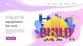 Budowanie transportu biznesowego. Nowoczesne maszyny budowlane, ciężki sprzęt budowlany, przemysłowy i ciężki sprzęt do wynajęcia koncepcji. Strona główna lądowanie strony internetowej szablon strony.