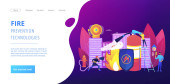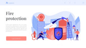 Strażak gaszący płomień. Ratowanie niebezpiecznej pracy. Ochrona przeciwpożarowa, technologie przeciwpożarowe, koncepcja ochrony przeciwpożarowej. Strona główna lądowanie strony internetowej szablon strony.