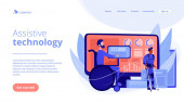 Zdjęcie "Dostosowanie społeczne. Ludzie ze specjalnymi potrzebami. Adaptacja społeczna osób niepełnosprawnych, dostosowanie środowiska społecznego, koncepcja technologii społecznych. Strona główna lądowanie strony internetowej szablon strony." może być wykorzystywane do celów osobistych i komercyjnych zgodnie z warunkami zakupionej licencji Royalty-free. Obraz jest dostępny do pobrania w jakości wysokiej rozdzielczości do 5760x3840.