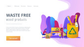 Przedmioty wielokrotnego użytku, alternatywne materiały nienadające się do recyklingu. Produkty z wolnego od odpadów drewna, produkty ze sklejki z odzysku, wtórne drewno z wykorzystaniem koncepcji. Strona główna lądowanie strony internetowej szablon strony.