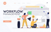 Organizacja i zarządzanie siłą roboczą. Procesy workflow, projektowanie procesów workflow i automatyzacja, zwiększają koncepcję produktywności Twojego biura. Strona główna lądowanie strony internetowej szablon strony.