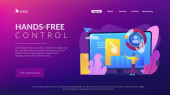 Rampa dla osób na wózkach inwalidzkich, opieka dla niepełnosprawnych. Dostępność projektowania środowiska, swoboda przemieszczania się, koncepcja obszaru przyjaznego osobom niepełnosprawnym. Strona główna lądowanie strony internetowej szablon strony.