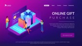 Sprzedawca proponujący rozwiązanie problemu konsumentów. Sprzedaż doradcza, sprzedaż zorientowana na klienta, koncepcja modnej metody sprzedaży. Strona internetowa żywe fioletowe lądowania szablon strony internetowej.