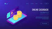 Oszczędność kosztów. Płatność online. Przelew. Oszczędności. Usługa cashback, rozszerzenie cashback online, dostać swoją koncepcję nagrody cashback. Strona główna lądowanie strony internetowej szablon strony.