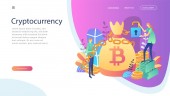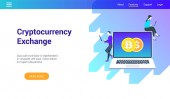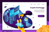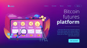 Analiza danych ekonomicznych, obliczanie wartości rynkowej. Kryptowaluta handlu biurko, Bitcoin futures platforma, oficjalna krypta wymiany usług koncepcja. Strona główna lądowanie strony internetowej szablon strony.