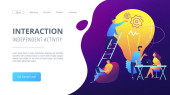 Tworzenie nowej strategii reklamowej. Celuję w docelową publiczność. Przyciąganie zwolenników, śledź nas w mediach społecznościowych, koncepcja liczenia abonentów. Strona główna lądowanie strony internetowej szablon strony.