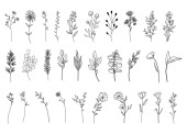 Zdjęcie "Ręcznie rysowane gałązki kwiatowe. Prosty szkic graficzny w kwiaty z liśćmi sylwetki, zarys stylu odizolowany na białym tle. Ilustracja wektora" może być wykorzystywane do celów osobistych i komercyjnych zgodnie z warunkami zakupionej licencji Royalty-free. Obraz jest dostępny do pobrania w jakości wysokiej rozdzielczości do 5760x3840.