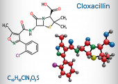 Cyprofloksacyna, cząsteczka chinolonu. To jest syntetyczny szerokie spektrum fluorochinolon antybiotyk. Wzór chemiczny szkieletu. Ilustracja wektora