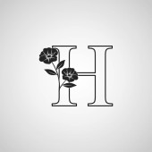 Zarys natura kwiat początkowy list H logo ikona, wektor litera z ręcznie rysowane ozdoba natura kwiat szablon projekt.