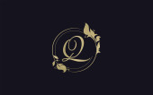 Zarys natura kwiat początkowy list Q logo ikona, wektor litera z ręcznie rysowane ozdoba natura kwiat szablon projekt.
