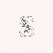 Zarys natura kwiat początkowy litera S logo ikona, wektor litera z ręcznie rysowane ozdoba natura kwiat szablon projekt.