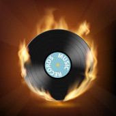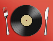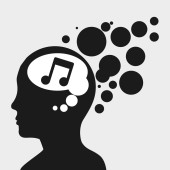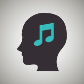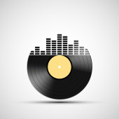 Płyta winylowa z korektorem dźwięku w ludzkiej głowie. Ikona wektora.