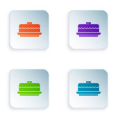 Zdjęcie "Kolor Gotowanie ikona garnka izolowane na białym tle. Gotować lub dusić symbol żywności. Zestaw kolorowych ikon w kwadratowych przyciskach. Wektor." może być wykorzystywane do celów osobistych i komercyjnych zgodnie z warunkami zakupionej licencji Royalty-free. Obraz jest dostępny do pobrania w jakości wysokiej rozdzielczości do 5760x3840.