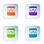 Kolor Gotowanie ikona garnka izolowane na białym tle. Gotować lub dusić symbol żywności. Zestaw kolorowych ikon w kwadratowych przyciskach. Wektor.