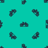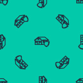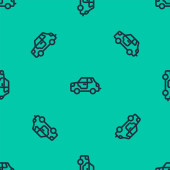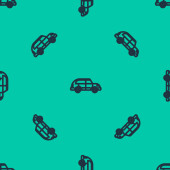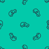 Niebieska linia Ikona samochodu odizolowany bezszwowy wzór na zielonym tle. Ilustracja wektora.