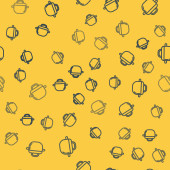 Niebieska linia Gotowanie ikona garnek odizolowany bezszwowy wzór na żółtym tle. Gotować lub dusić symbol żywności. Wektor.